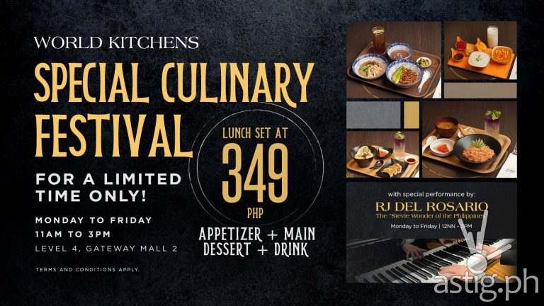 As a special limited-time offer, World Kitchens is making the dining experience even more irresistible with its Special Culinary Festival—a weekday promo featuring complete lunch sets for just ₱349. Available Monday to Friday from 11AM to 3PM, the promo includes specially curated meals that combine an appetizer, main course, dessert, and drink in one value-packed package.