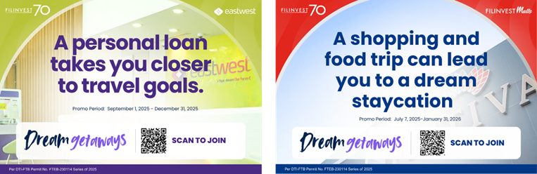 Ongoing activities continue to engage customers across the Filinvest network. EastWest offers clients applying for personal loans a chance to win hotel vouchers, while shoppers and diners at Filinvest malls can earn entries through their transactions.