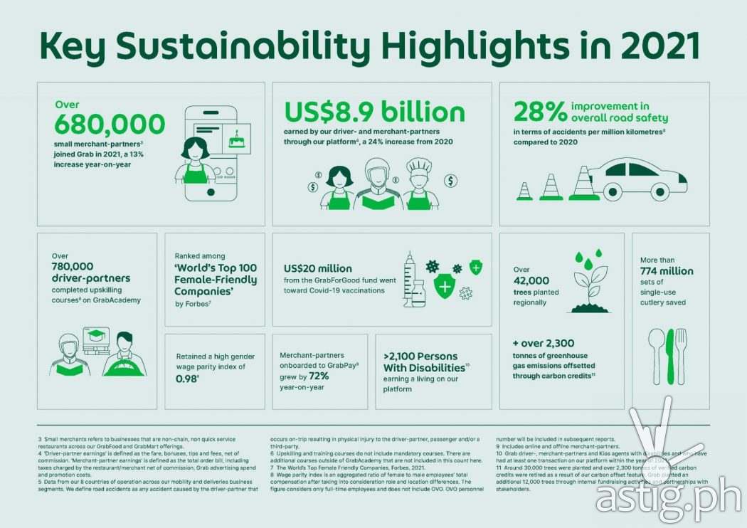 Grab’s ESG report also tracked the company’s impact in 2021 across key priority areas: