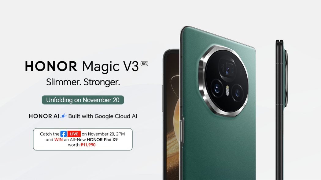 MANILA, Philippines – The wait is almost over! HONOR is set to unveil the Magic V3, the world’s thinnest foldable smartphone, this November 20 at 2 PM. In case you missed it, we compared its super thin profile against the Galaxy Z Fold 6 earlier.