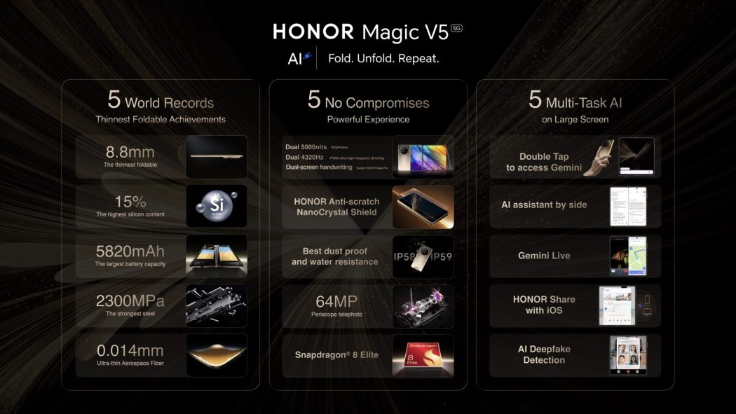 “HONOR Magic V5 represents the cutting edge of smartphone industrial design and innovation, including the world’s first mass-produced 6,100mAh silicon-carbon battery with 25% silicon content. Empowered by AI, the agentic YOYO assistant introduces new AI features to help users make the most of the large screens,” said HONOR Philippines Vice President Stephen Cheng.