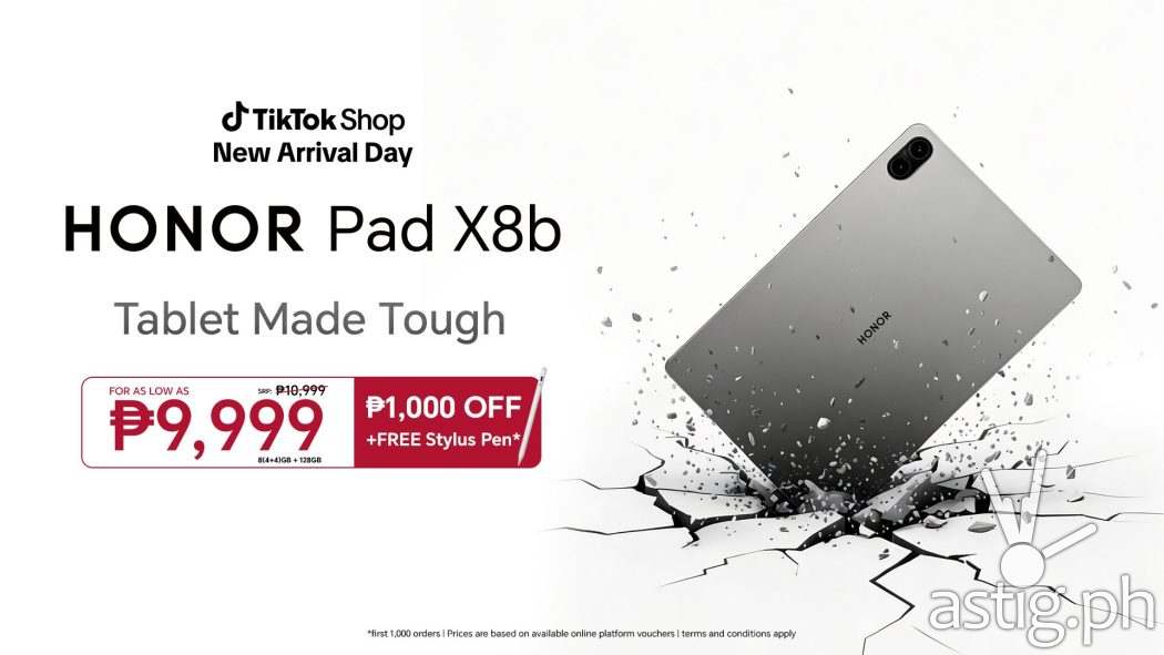 In the Philippines, the HONOR Pad X8b is priced at Php 9,999. It launched on April 14, 2026, and during the initial period (April 14–21), it comes with a free Stylus Pen when purchased on TikTok Shop. This makes it competitively positioned for a durable, family-oriented tablet.