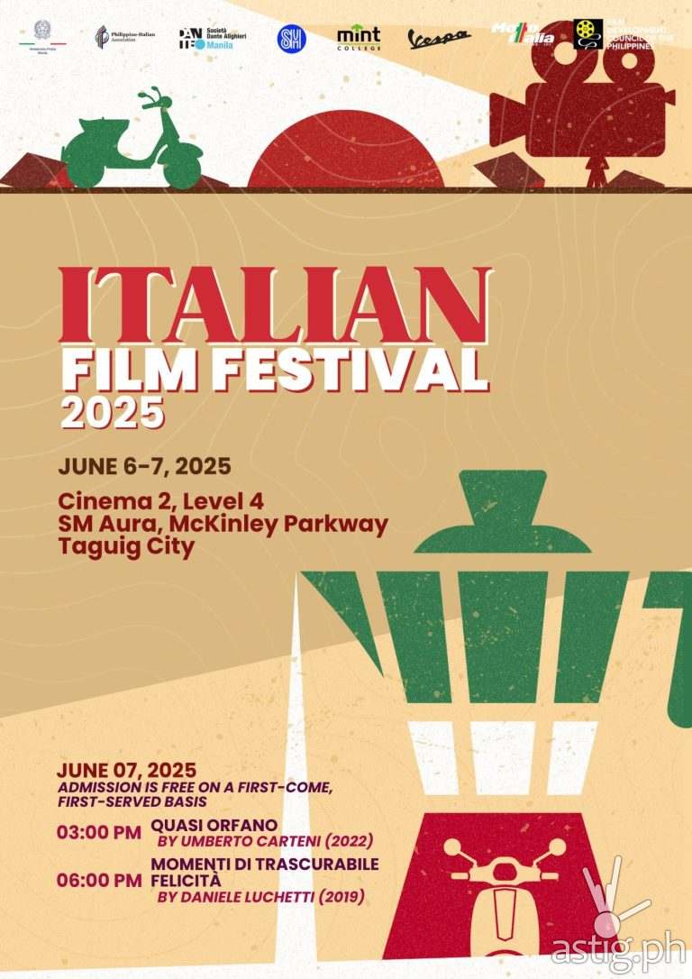 The Italian Film Festival 2025 is a joint initiative of the Embassy of Italy in Manila, Philippine-Italian Association, Società Dante Alighieri, SM Supermalls, Film Development Council of the Philippines (FDCP), Vespa, and MINT College.