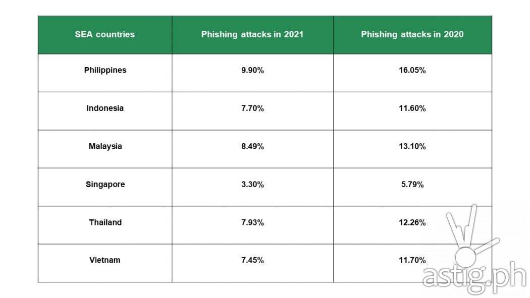 However, data from Kaspersky showed last year that the Philippines experienced a 38.31% decrease in the number of users exposed to phishing attempts compared in 2020 at 16.05%.
