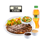 - Low Carb Meal featuring striploin steak with pepper gravy, coleslaw, kani and mango salad, and a drink. With only 24g of carbohydrates, it fits well for guests managing their carb intake while still supporting daily nutritional needs.