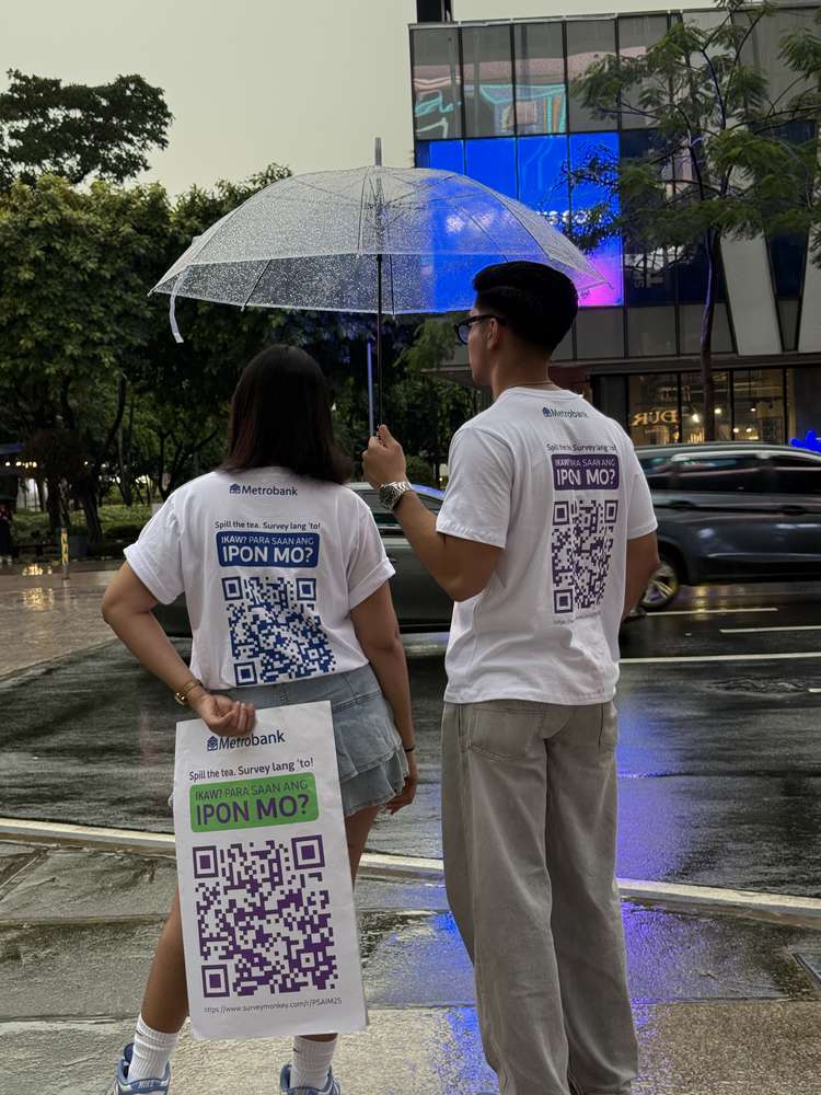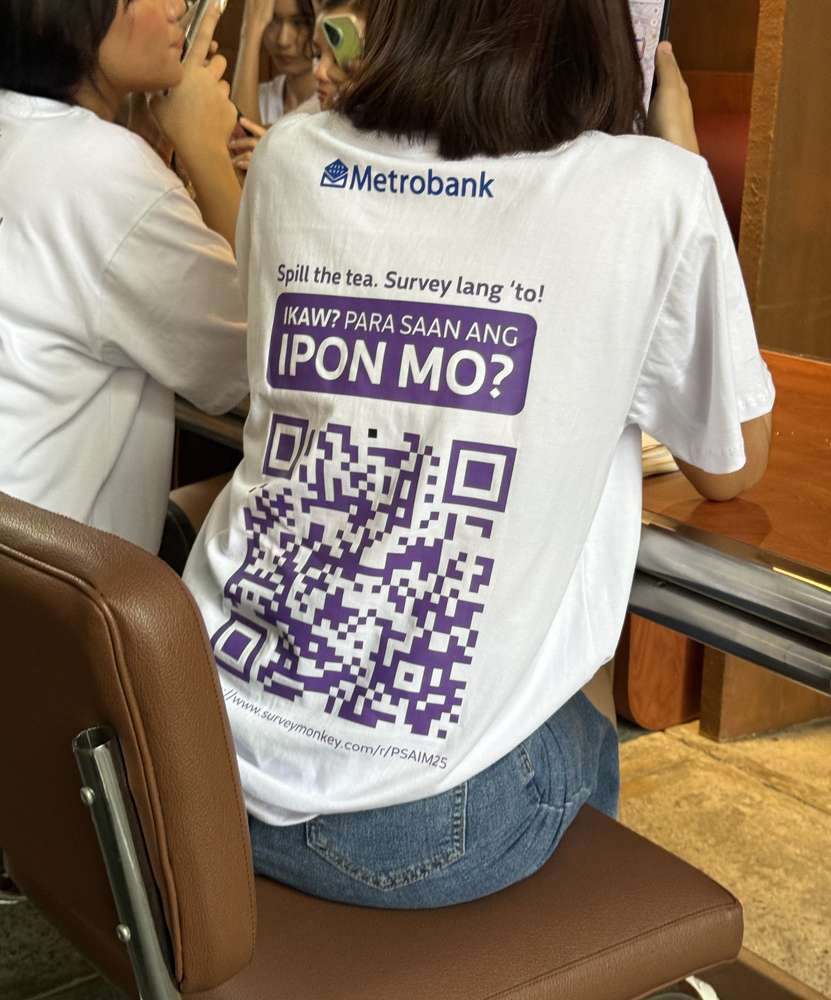 Printed on bold statement shirts, oversized tote bags, oversized newspapers, and cookies—Metrobank ambassadors asked Filipinos to scan a QR code that led to a survey seeking to uncover the many reasons Filipinos save.