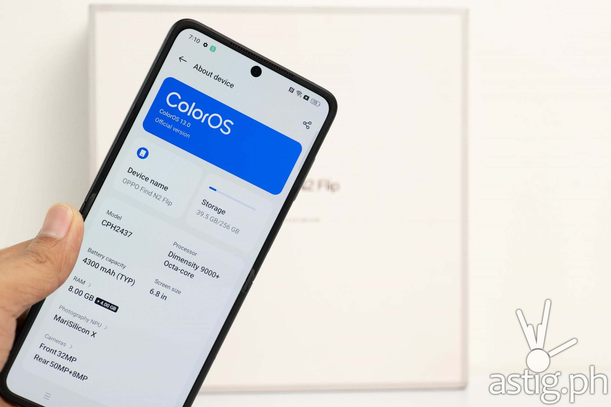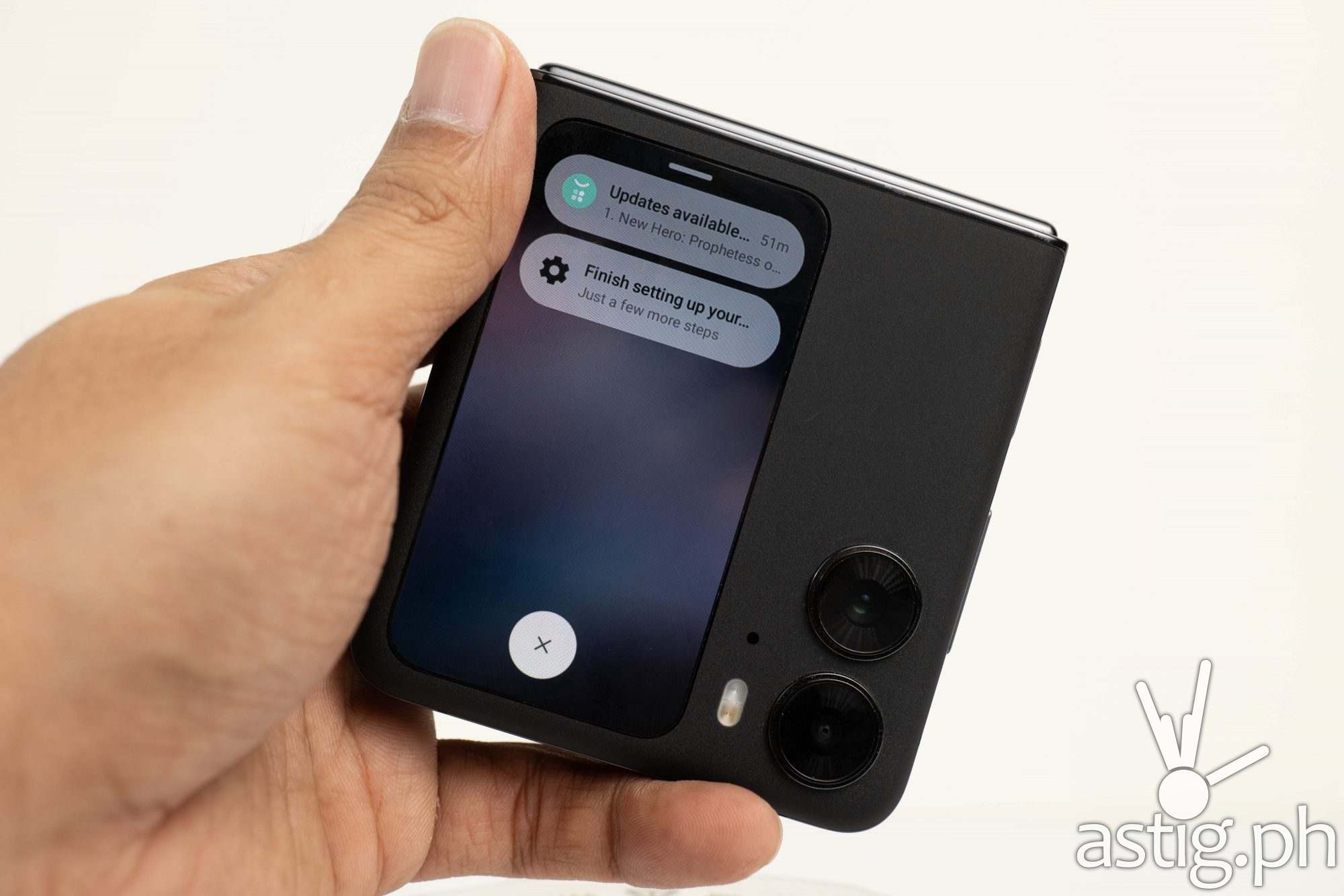 The one we got features a subtle textured finish, making it easy to grip. It has a shiny spine that bears the OPPO logo. When opened, the OPPO Find N2 Flip expands to around 6.8 inches long and barely 1/4 of an inch thick. The well-made case and hinge are sturdy enough for about 400,000 folds, according to OPPO.