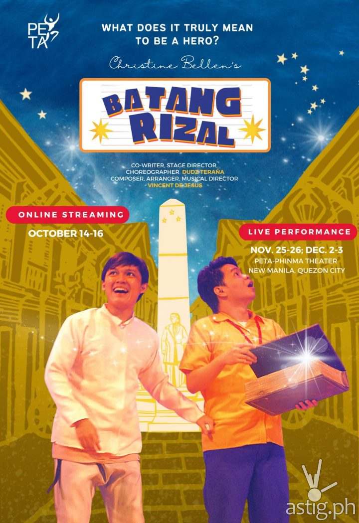 Watch Batang Rizal’s online streaming via KTX.ph from October 14-16, 2022, and the limited run at the PETA Theater Center on November 25 and December 2 (9:00 AM and 3:00 PM).