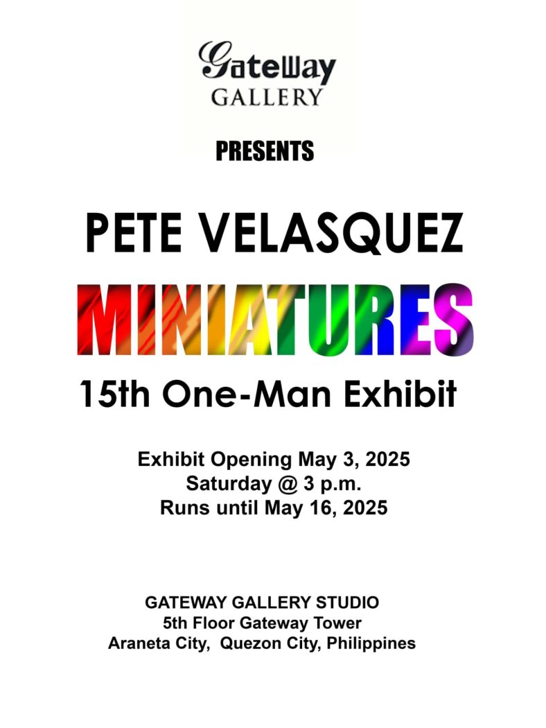 Miniatures features 71 artworks that are comparatively smaller than his average works. The exhibit opened on May 3 and will run until the 16th, at the Gateway Gallery Studio. Meet the artist when you visit his exhibition. The exhibit, his 5th exhibit at the Gateway Gallery, is open from 10 am to 6 pm.