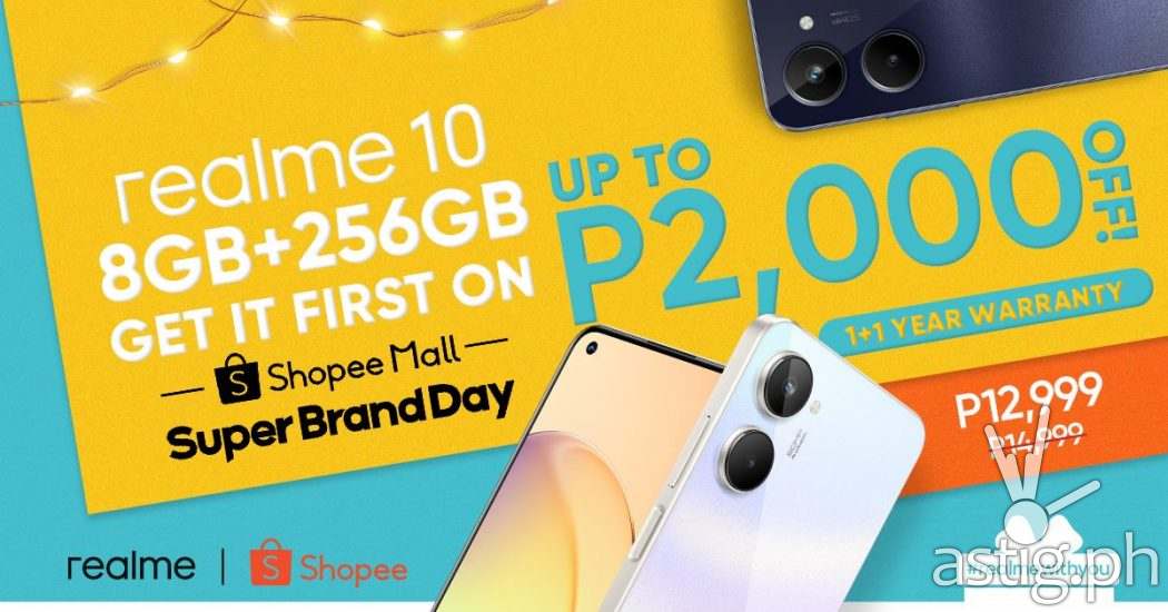 Catch the first-selling of realme 10 (8GB+256GB) at P2000 OFF at Shopee Super Brand Day!