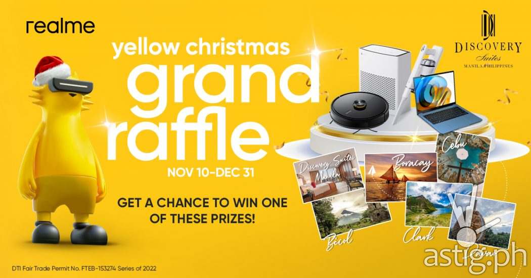 Get the chance to win an overnight staycation package at Discovery Suites Manila (good for 2 adults) and round trip tickets with hotel accommodation for two (2) nights to Bicol, Boracay, Davao, Clark, or Cebu! The realme Yellow Christmas Grand Raffle Promo runs until December 31, 2022.