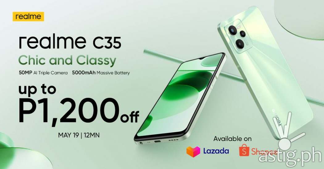 The realme C35 will also be available via the realme Official Store on Lazada and Shopee where you can catch discounts of up to P1,200 OFF starting this midnight, May 19.