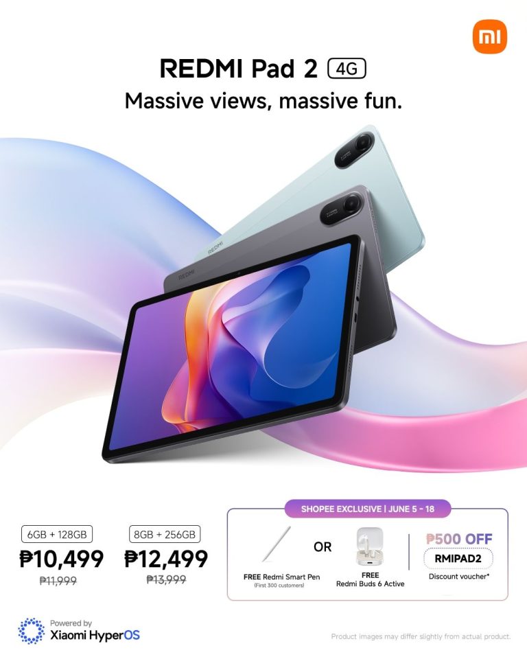 As a special launch promotion on Shopee from June 5 to 18, buyers can receive a free Redmi Smart Pen or Redmi Buds 6 Active. Additionally, a P500 discount is available on Shopee using the voucher code RMIPAD2.