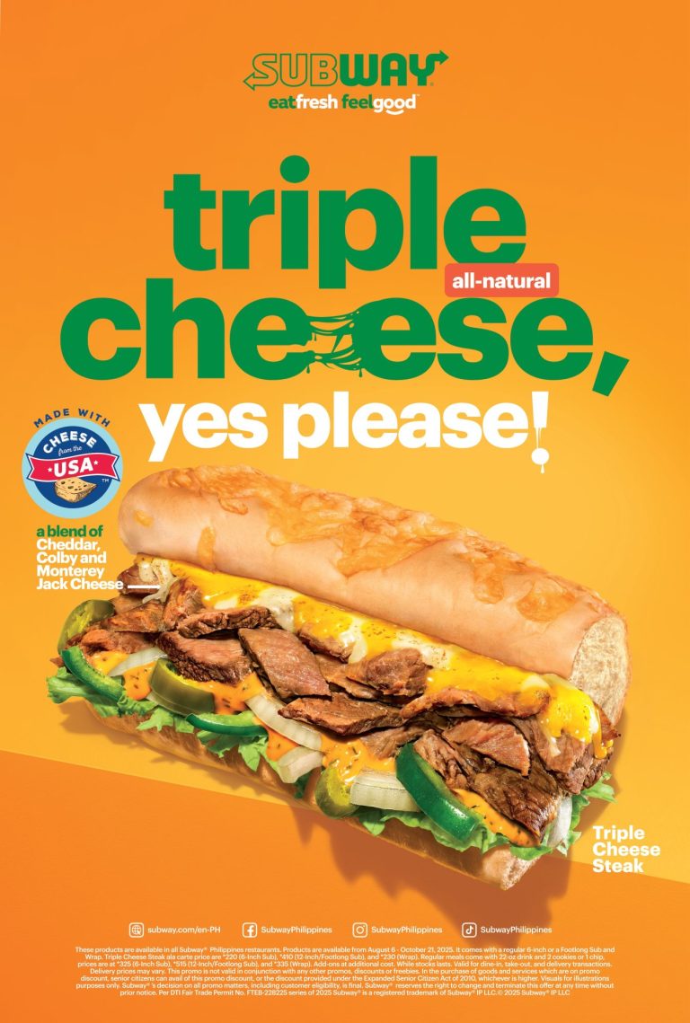 Starting August 6, Subway® Philippines is bringing its latest limited-time offer to stores nationwide: the all-new Triple Cheese Steak sub featuring a rich blend of all-natural Cheeses from the USA.