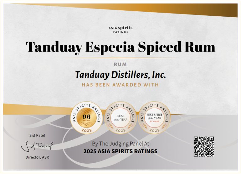 Apart from Tanduay Especia Spiced Rum, several Tanduay products also earned medals from Asia Spirits Ratings.