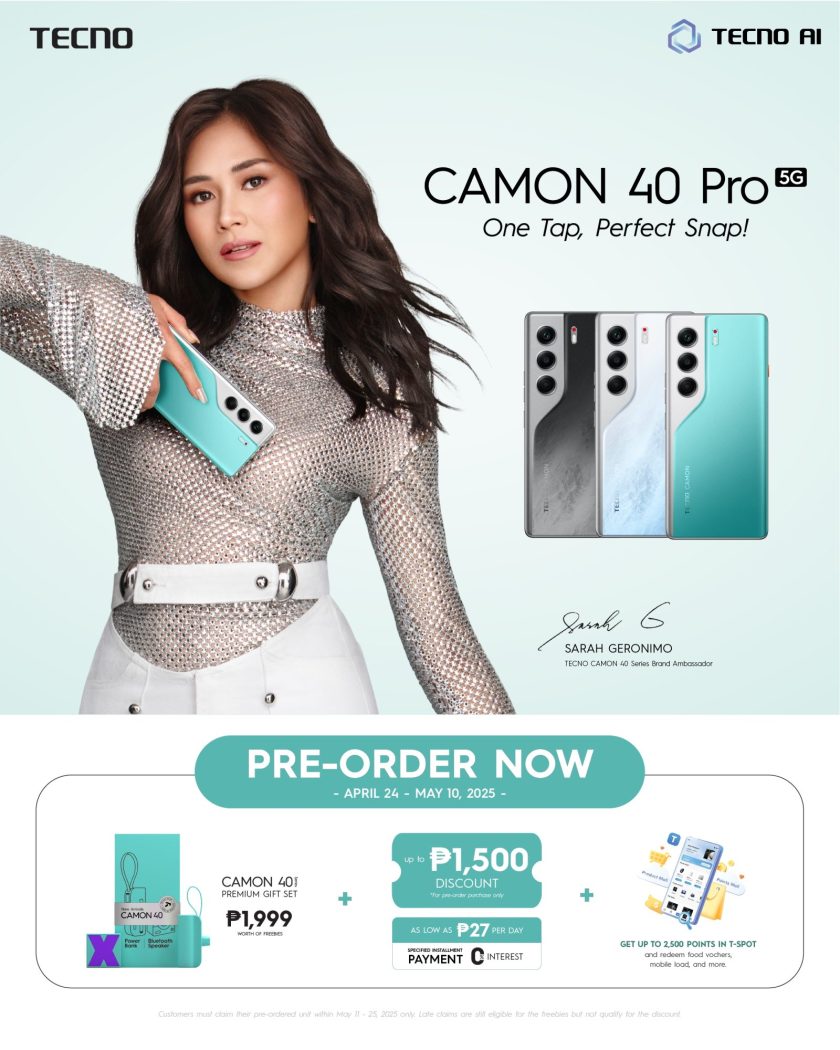 MANILA, Philippines (Apr 22, 2025) – Never miss a perfect moment again. TECNO officially launched its latest flagship camera phone series, the CAMON 40, in the Philippines today, featuring popstar royalty Sarah Geronimo as its brand ambassador. The new phones promise Filipinos the ability to capture fleeting moments instantly with advanced Artificial Intelligence (AI) features.