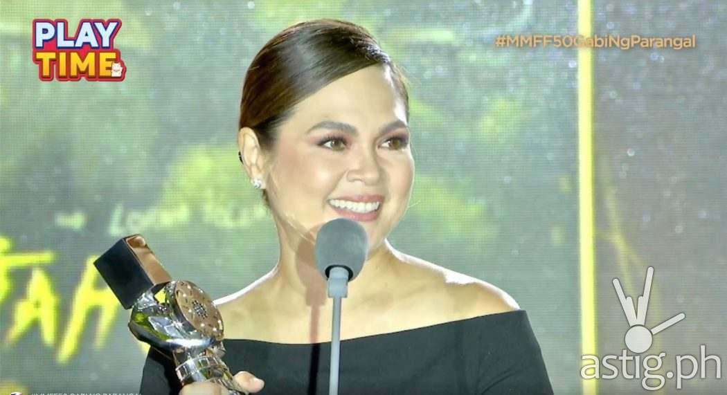Not to be missed was the special appearance of former President Joseph Ejercito Estrada as he was bestowed the MMFF Lifetime Achievement Award and considered as Father of the MMFF. As trivia, President Estrada was also the first Best Actor winner for the film, Diligin Mo ng Hamog ang Uhaw na Lupa in 1975. Senator Jinggoy Estrada accompanied his father and read his acceptance speech.