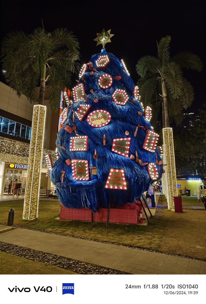 Adorned with iconic Filipino expressions, this tree is a playful twist on traditional Christmas decor. Capture its charm at night with the vivo V40’s AI Aura Light, which adapts to low-light conditions for stunning, balanced shots.
