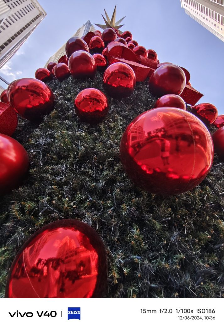 Zoom in on the vibrant red Christmas balls that adorn BGC. The vivo V40’s ZEISS Multifocal Mode lets you experiment with focal lengths, creating pro-level images that highlight even the tiniest details.