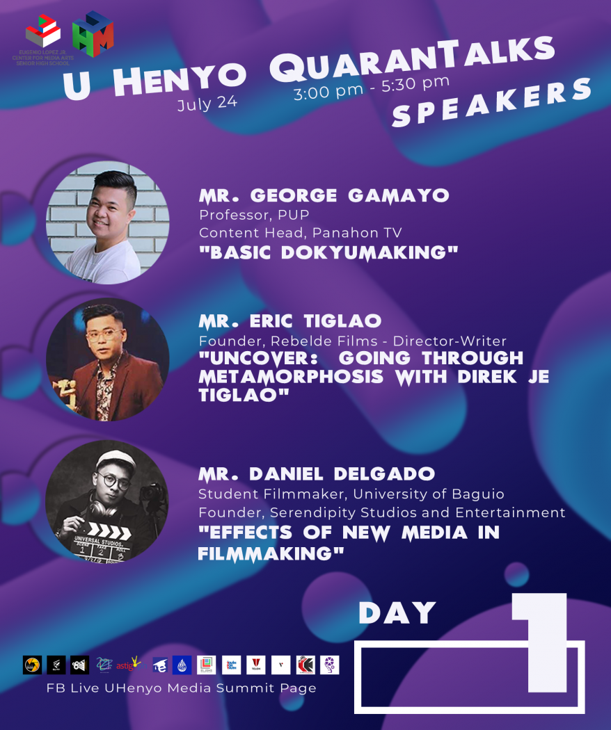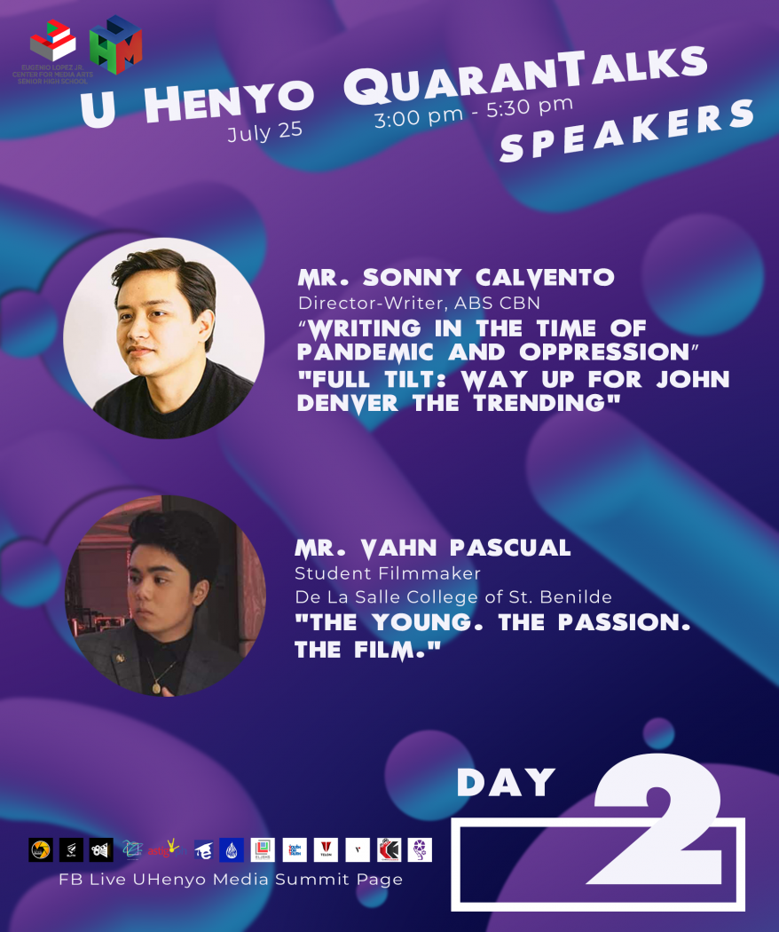 Eugenio Lopez Center for Media arts presents U Henyo Media Summit: U Henyo QuaranTalks, an online web seminar which will be held on July 24 and 25, 2020 at 3:00pm-5:00pm.