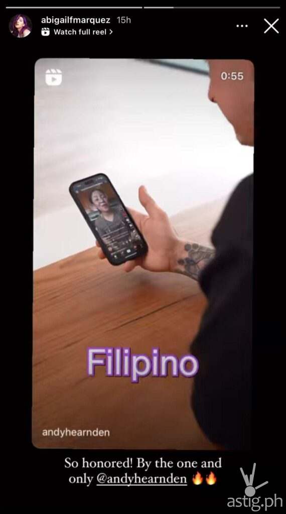 On her Instagram, Abi Marquez shared how thrilled she is to be featured in one of Andy Cooks’ videos.