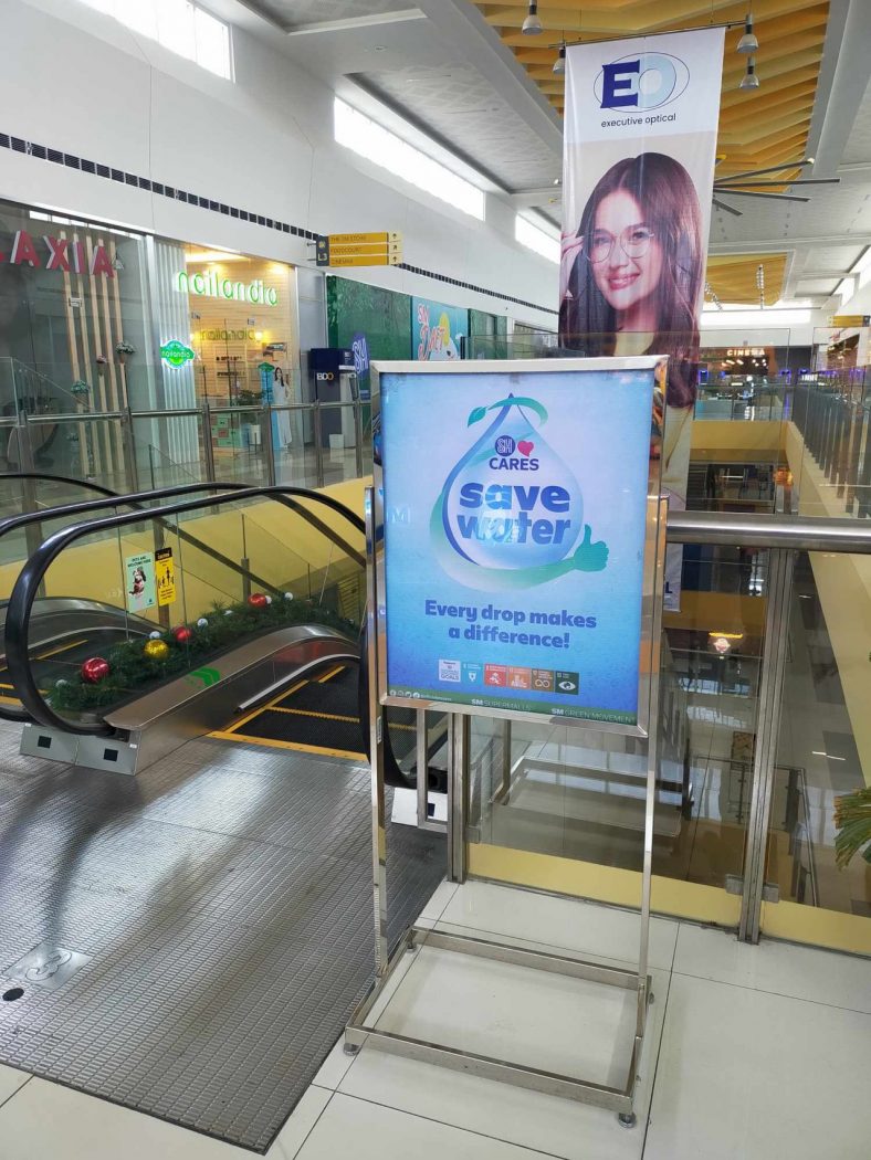 SM Malls have “Save Water” signages that typically aim to create awareness about water conservation and inspire people to take simple actions to reduce their water consumption
